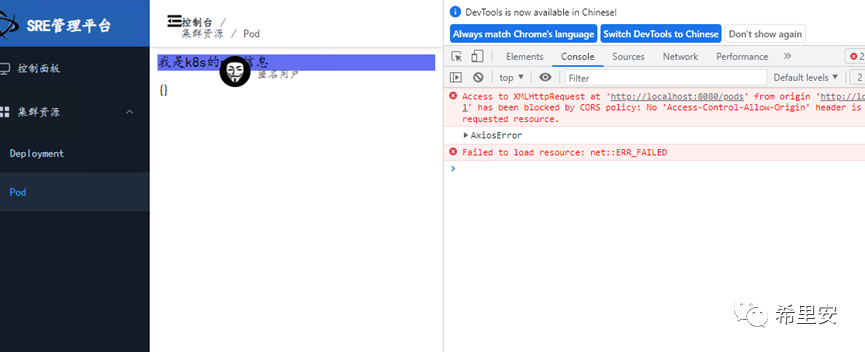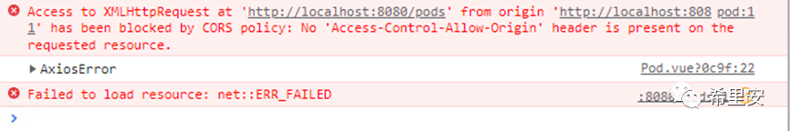 打开前端,打开pod页面不显示信息,什么问题,调试信息表示如下: