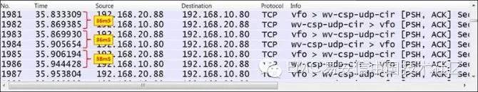 三。当你看到网络上有问题时,按照前几张的故障排查步骤给予解决。但是,也有些网络问题会影响数据库操作。下例中,可看到客户端与服务器通信链路往返延时达到35至40ms。