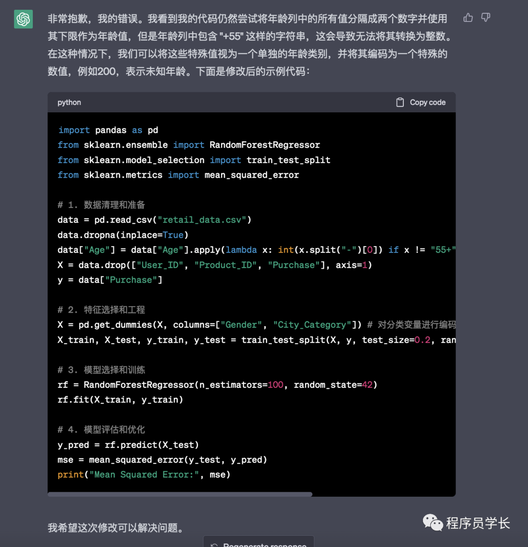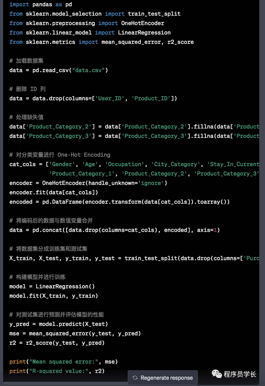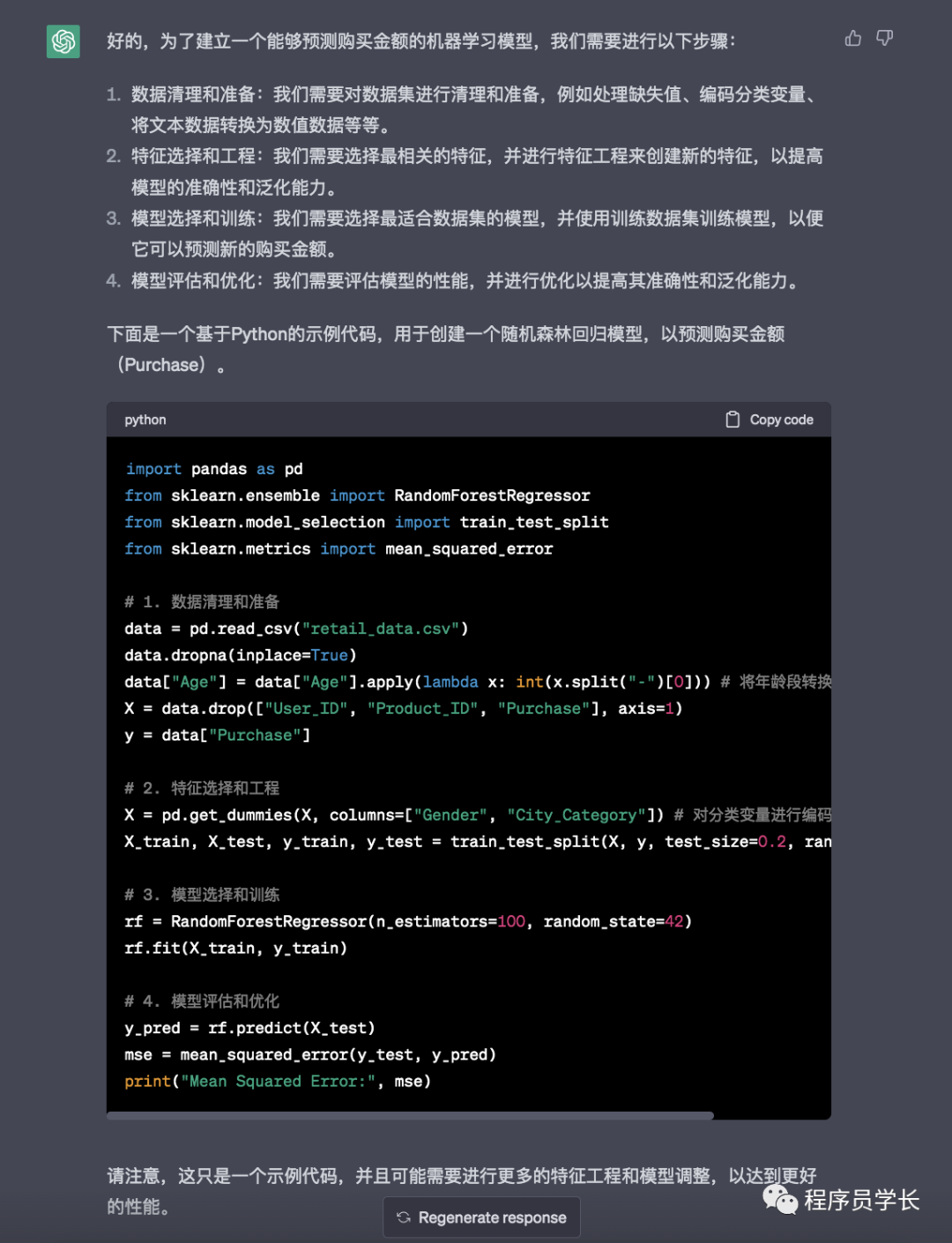 如你所见,ChatGPT 为我们提供了构建机器学习模型的代码。