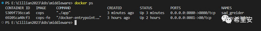 这么一看,确实有信息,前后端的容器化是实现了,我们再看看运行的进程: