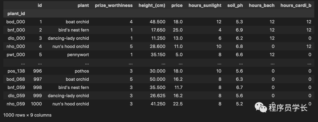 假设 csv 文件中包含一个唯一的植物标识符,我们希望将其用作 DataFrame 中的索引。我们可以使用 index_col 参数进行设置。