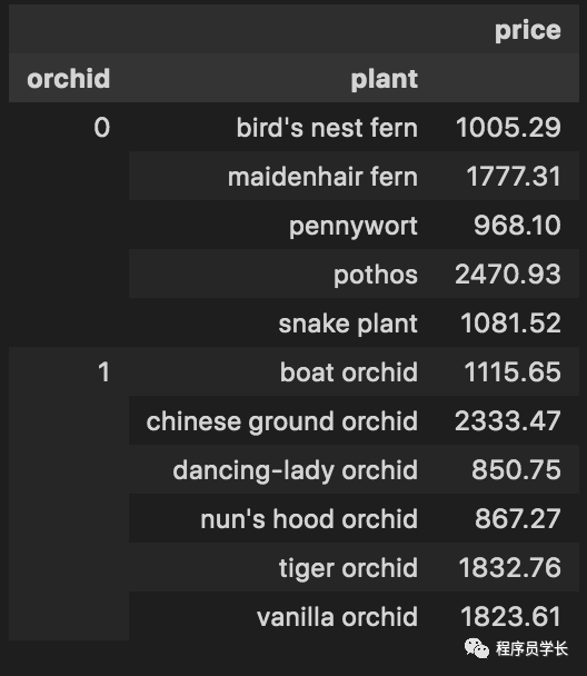 piv0 = data[['orchid','plant','price']].groupby(by=['orchid','plant']).sum()