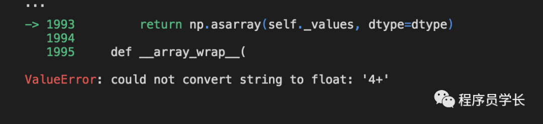 上述代码是错误的。ValueError: could not convert string to float: '4+'
