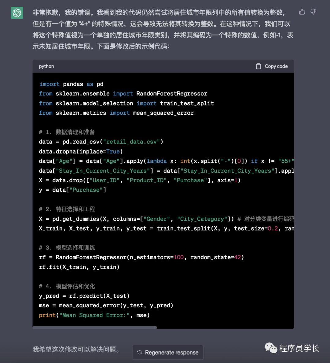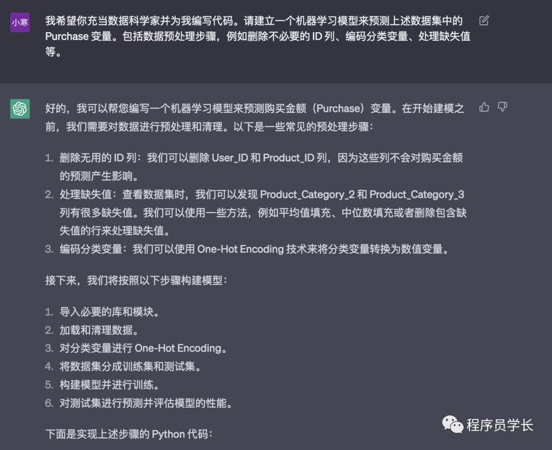 如你所见,ChatGPT 为我们提供了构建机器学习模型的代码。
