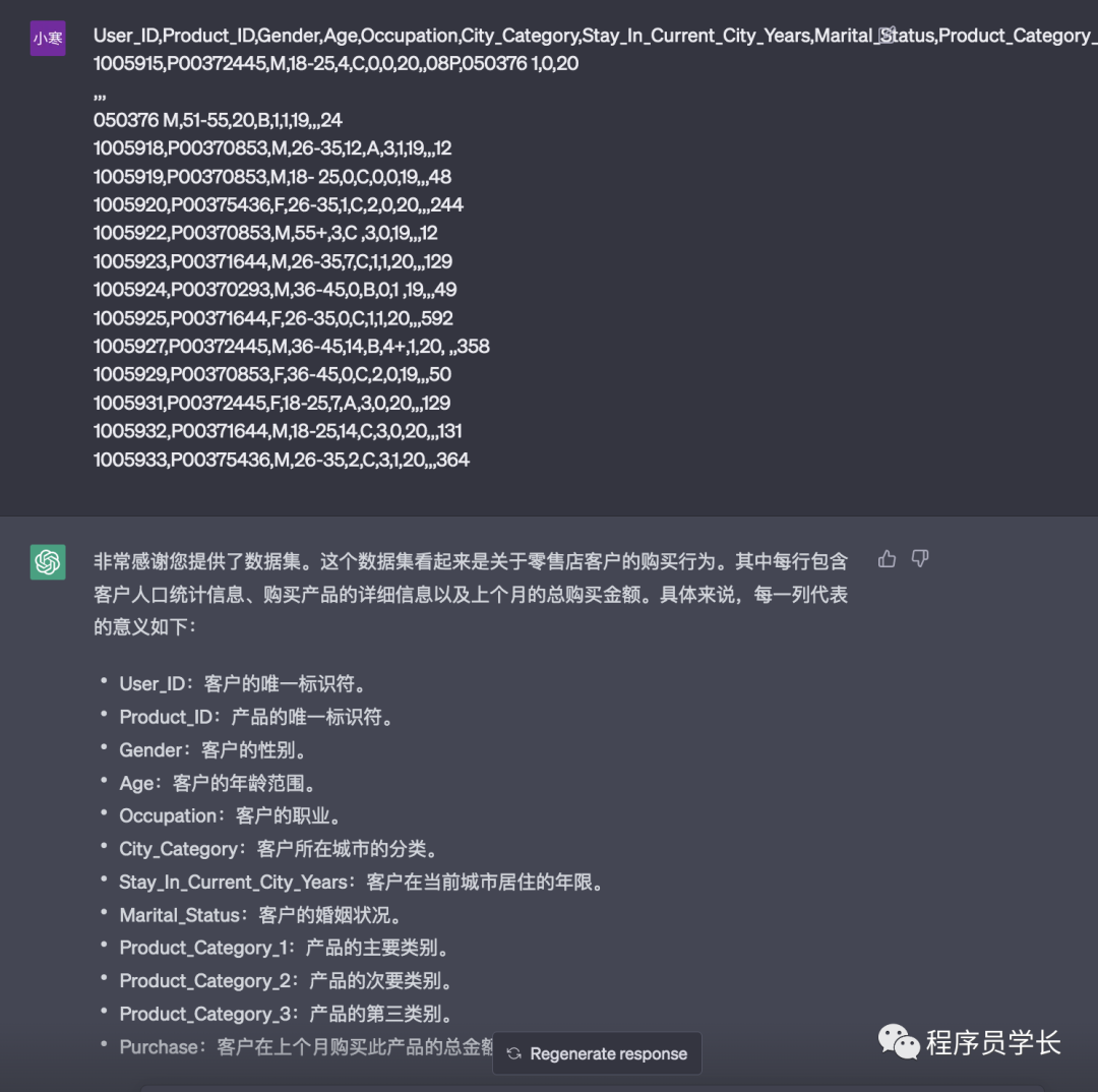 在第一个提示中,我将向 ChatGPT 介绍数据集及其内容。