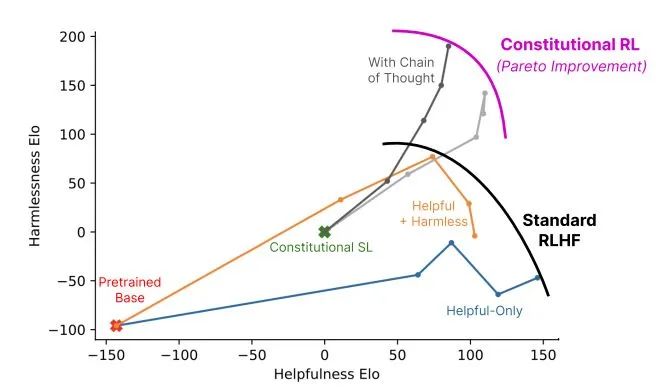 Claude 和 ChatGPT 都依赖于强化学习(RL)来训练偏好(preference)模型。CAI(Constitutional AI)也是建立在RLHF的基础之上,不同之处在于,CAI的排序过程使用模型(而非人类)对所有生成的输出结果提供一个初始排序结果。CAI用人工智能反馈来代替人类对表达无害性的偏好,即RLAIF,人工智能根据一套constitution原则来评价回复内容。▌5.2 补足数理短板