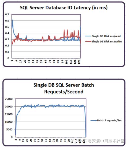测试结果达到1.32M的 TPM,每秒21000的批量请求每秒,这种情况下,单个V-Brick的VMAX全闪存阵列的缓存利用率在75%,IO延迟只有区区的0.3 ms。