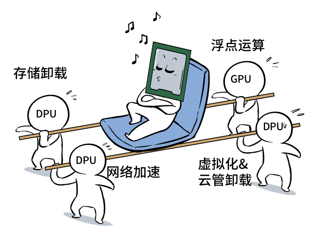 负责充当CPU老大的打手,干一些脏活累活(存储卸载、网络卸载、虚拟化和管理卸载)。