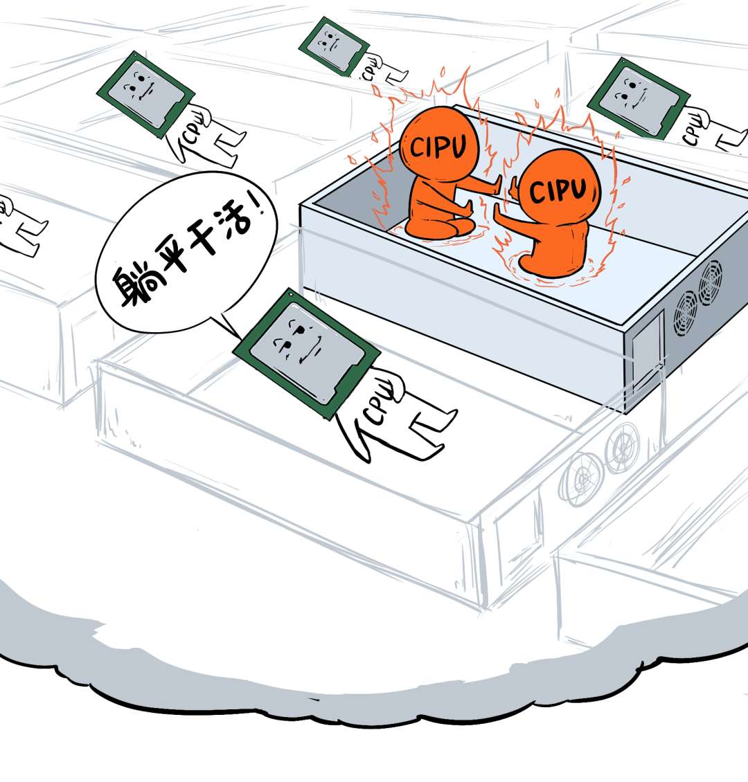 在云数据中心的一组集群里,有台插满CIPU的“装置”,作为中枢,把周边的计算型节点、存储型节点统统“纳管”起来,变成了一台“超级服务器”。
