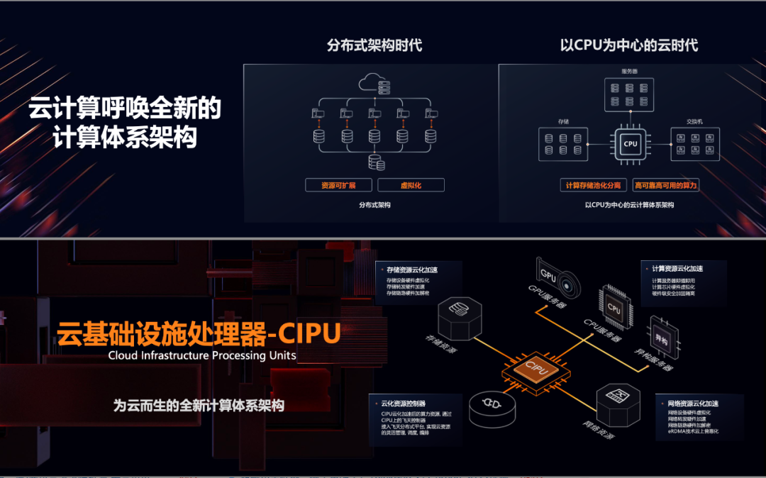 但是,今天阿里云CIPU发布,云基础设施的架构被颠覆了,从以CPU为中心,变成了以CIPU为中心。