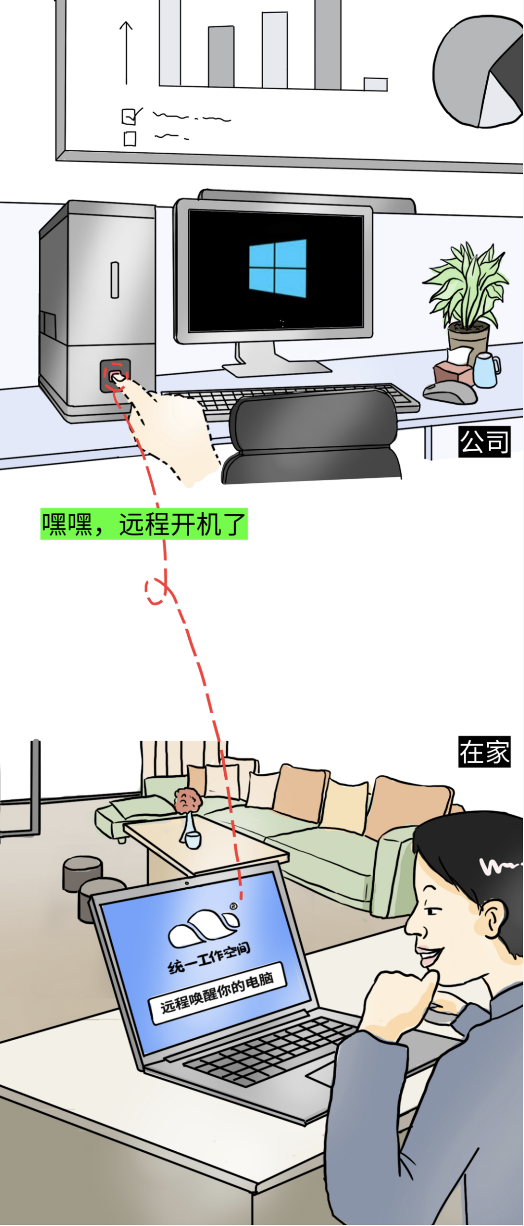 1、随时在远处“开关”公司电脑
