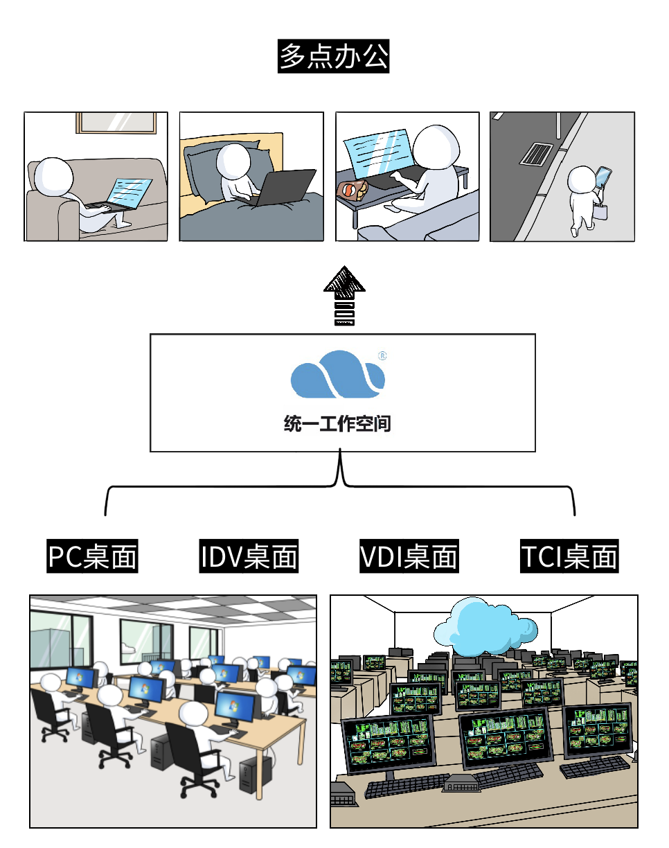 “U空间”是锐捷云桌面方案面向多点远程办公场景的延伸