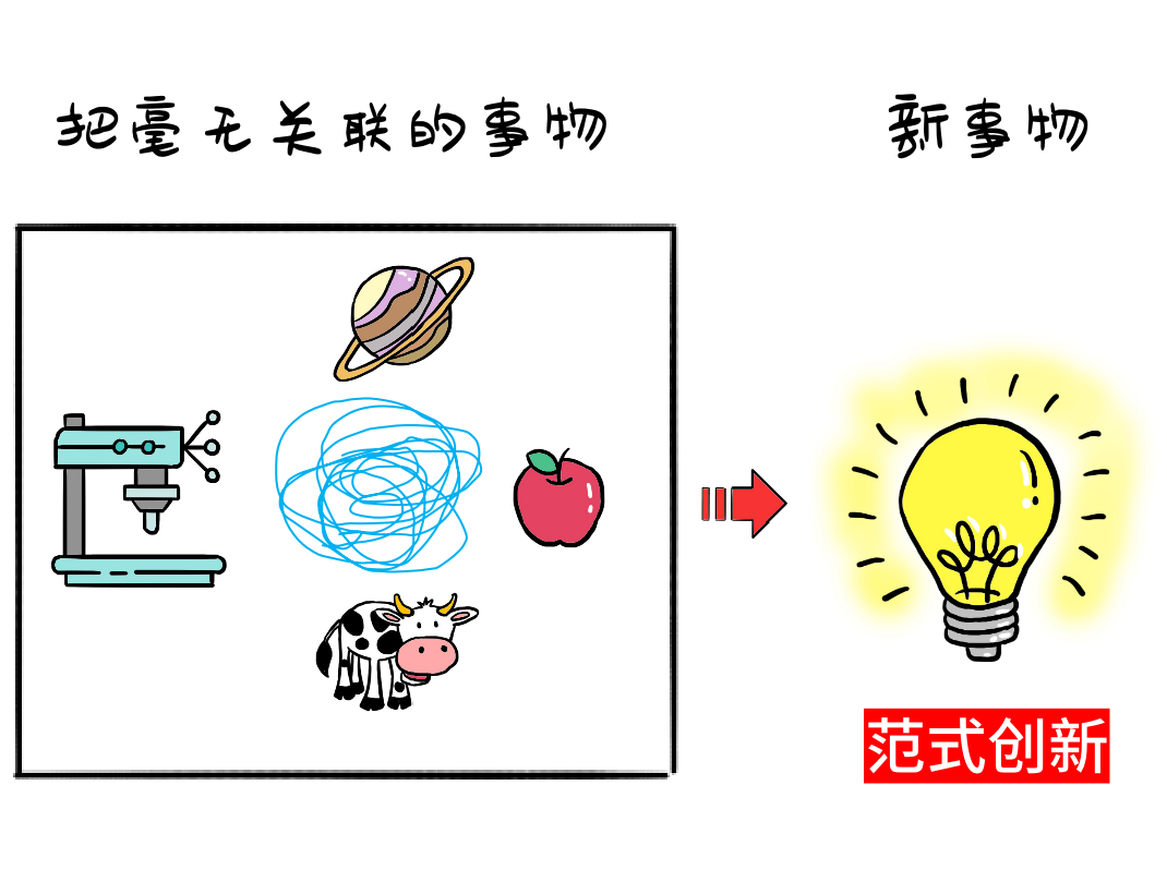 把不同领域之间,毫不关联的事物联系在一起,打破隔阂,创造出新的可能,这就是范式创新。