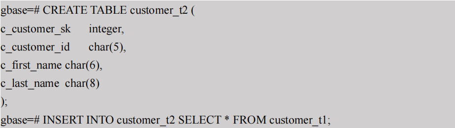 如果需要将数据或数据子集从一个表移动到另一个表,可以使用《GBase 8s V8.8_SQL手册》 INSERT 和 CREATE TABLE AS 命令。