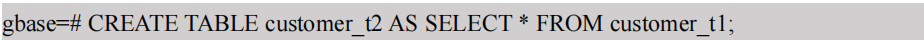 如果从指定表插入数据到当前表,例如在数据库中创建了一个表 customer_t1 的备份表customer_t2,现在需要将表 customer_t1 中的数据插入到表 customer_t2 中,则可以执行如下命令。