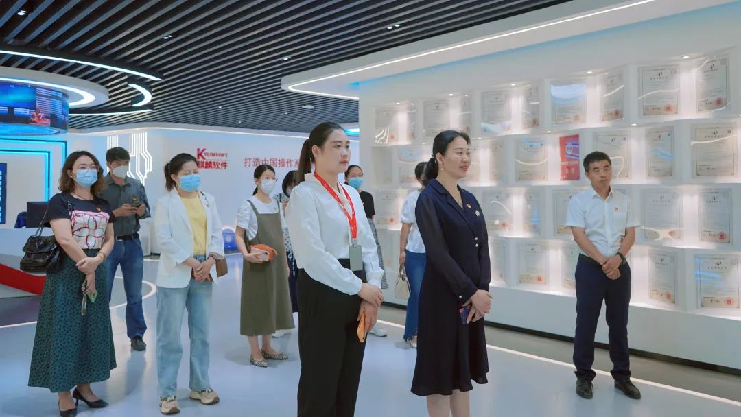 麒麟软件广东政府事业部总经理梁琼首先带领桂爱民一行参观了麒麟软件广州公司展厅,并重点介绍了麒麟软件的人才培养体系及未来发展方向。