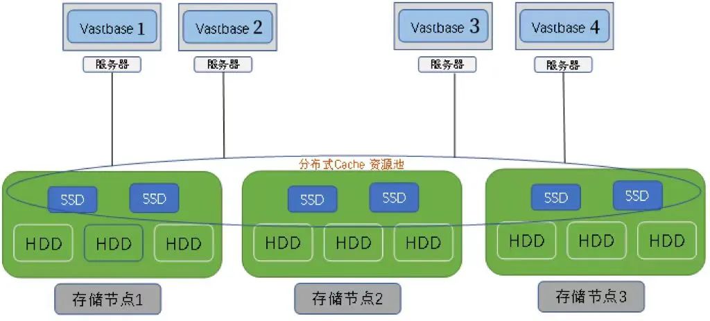 Vastcube G3000数据库一体机将分布在各存储节点上的SSD组建成为一个共享的分布式Cache资源池,供所有的业务共同所用,充分利用了所有的SSD资源。