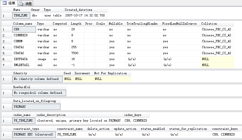 USE YSGZZ;GOEXEC sp_help 'TBHLJLMX';GO