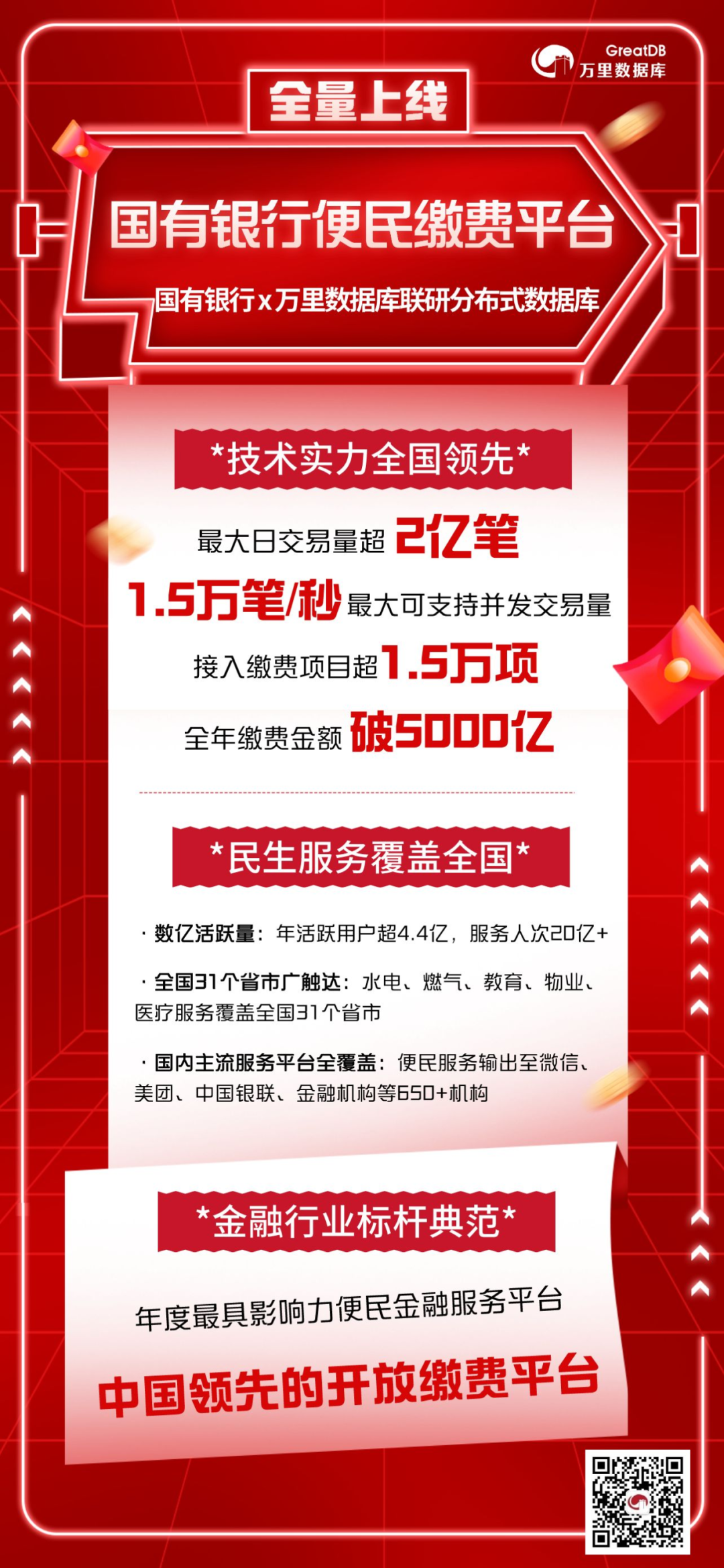 日活上亿丨创意信息旗下万里数据库助力国有银行便民缴费平台全量上线!
