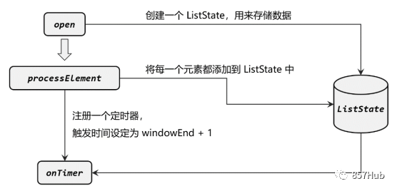 用于定义定时触发的操作,这是一个非常强大、也非常有趣的功能。这个方法只有在注册好的定时器触发的时候才会调用,而定时器是通过“定时服务”TimerService来注册的。打个比方,注册定时器(timer)就是设了一个闹钟,到了设定时间就会响;而.onTimer()中定义的,就是闹钟响的时候要做的事。所以它本质上是一个基于时间的“回调”(callback)方法,通过时间的进展来触发;在事件时间语义下就是由水位线(watermark)来触发了。