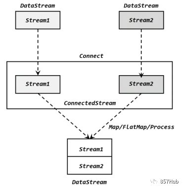 广播连接流处理函数,基于BroadcastConnectedStream调用.process()时作为参数传入。这里的“广播连接流”BroadcastConnectedStream,是一个未keyBy的普通DataStream与一个广播流(BroadcastStream)做连接(conncet)之后的产物。关于广播流的相关操作,我们会在后续章节详细介绍。