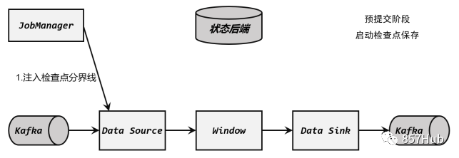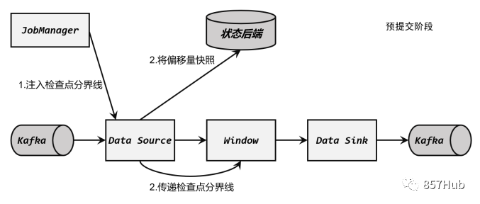 检查点保存的启动,标志着我们进入了两阶段提交协议的“预提交”阶段。当然,现在还没有具体提交的数据。