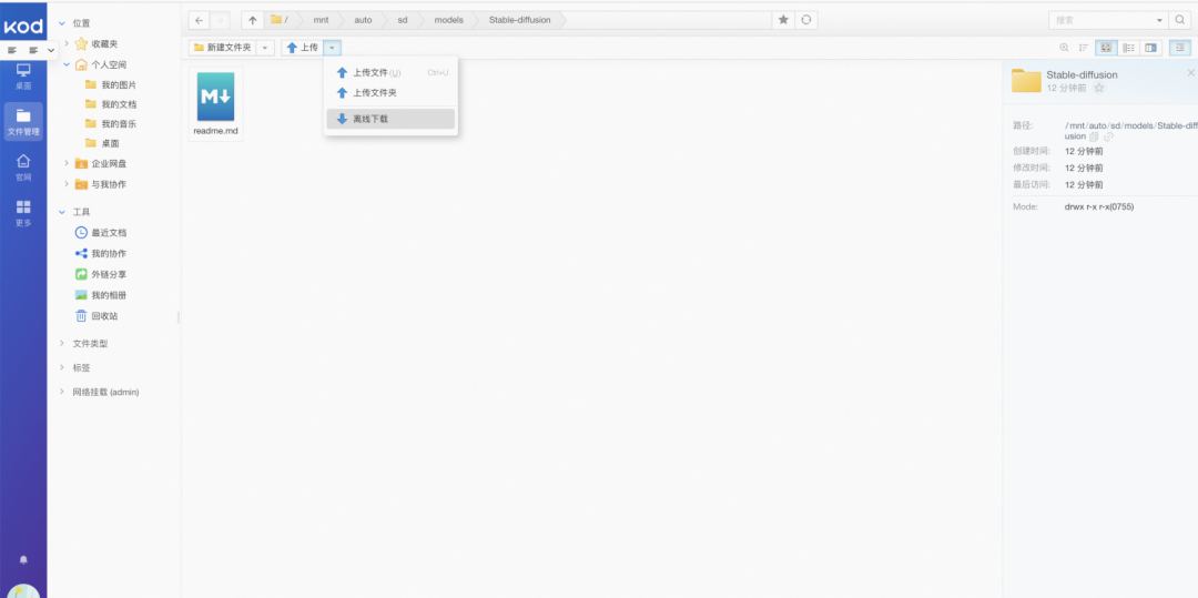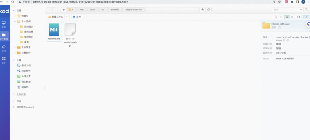 其中 Stable Diffusion 开头的是主服务,目前因为没镜像还不能访问,admin 开头的是我们的管理后台,接下来我们需要先配置一下管理后台,然后把我们的模型上传上去。