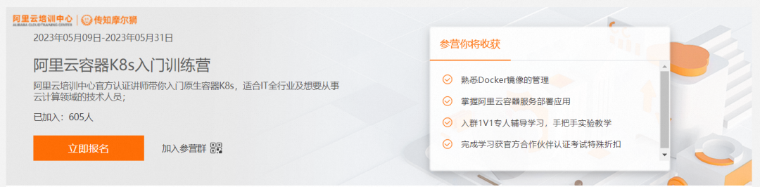 阿里云容器 K8s 训练营旨在帮助用户快速学习和掌握 Kubernetes 技术,从而成为 Kubernetes 专家。训练营提供了一系列实战案例和训练课程,帮助大家深入了解 Kubernetes 的架构、组件、部署、运维等方面,实现容器化应用的高效管理和运营。学习完课程,并完成参营任务,您可以得到:① 前 100 名可获得阿里云保温杯,前 101-300 名可获得阿里云小宝公仔;② 获得电子结营证书一张。训练营地址:https://developer.aliyun.com/trainingcamp/83262c78375b422d90d9bdfa86fb4d46?spm=a2c6h.12883283.index.1.7c844307sWVc20