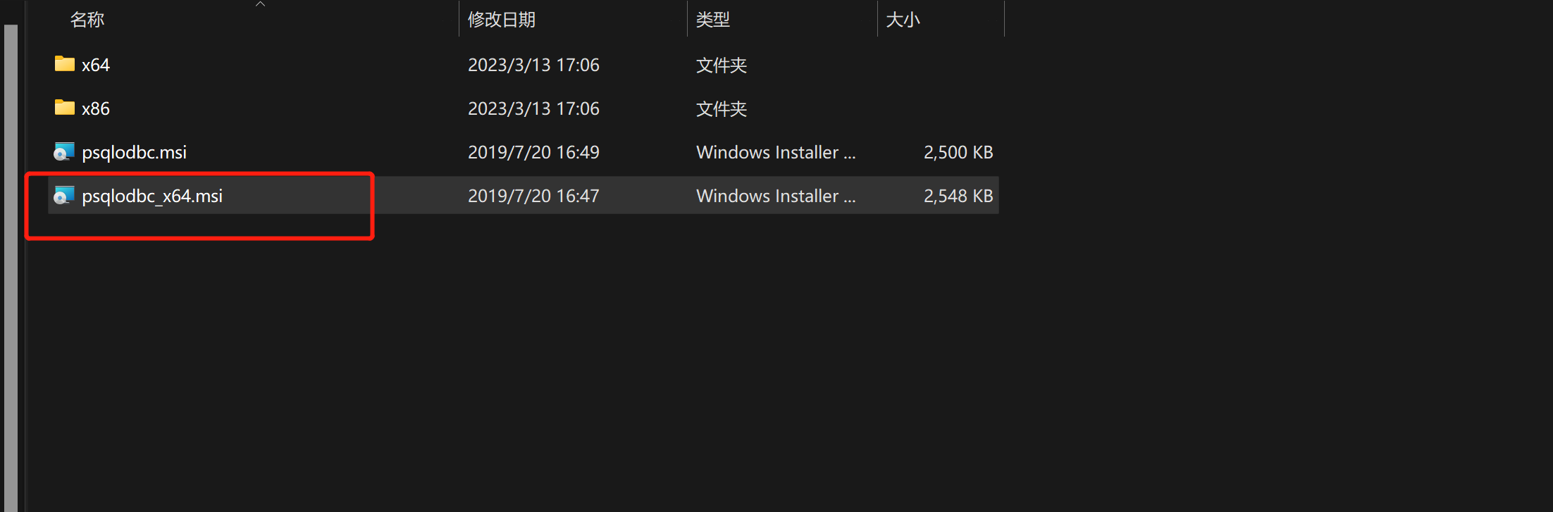 1、解压zip包,双击安装psqlodbc_x64.msi