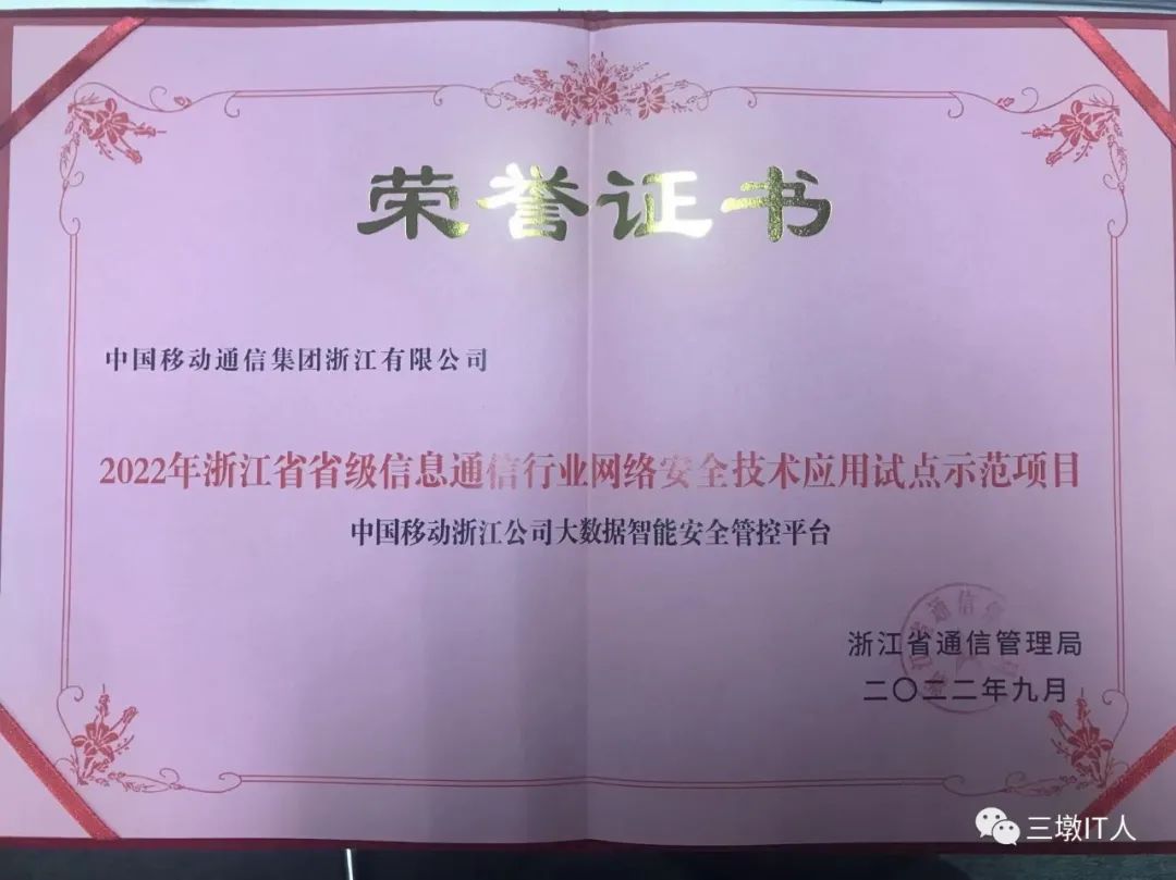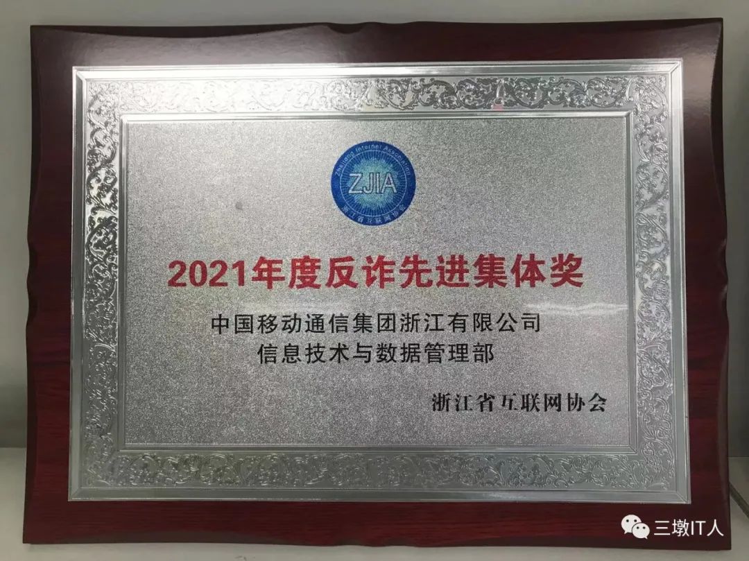 浙江公司信息数据部获浙江省互联网协会“反诈先进集体称号”
