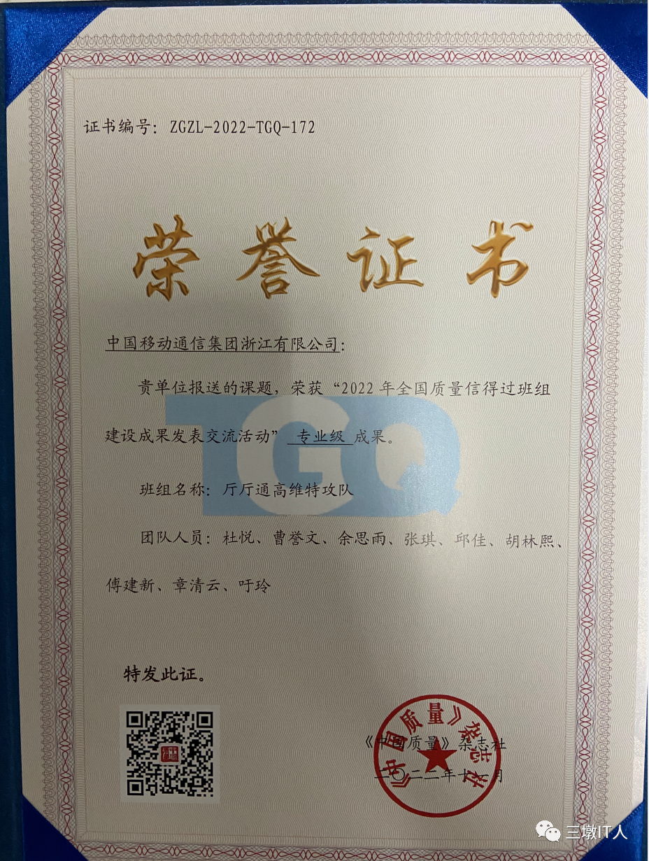 浙江公司获全国信息通信行业管理创新成果二等奖、集团十佳奖