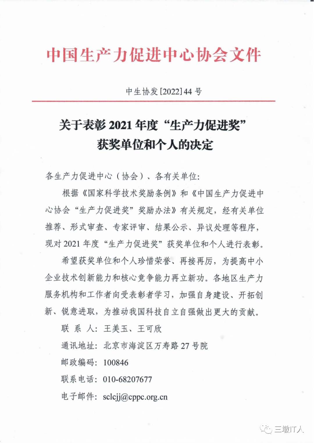 自主可控营业外设适配能力获科技部生产力促进中心"生产力促进奖"一等奖