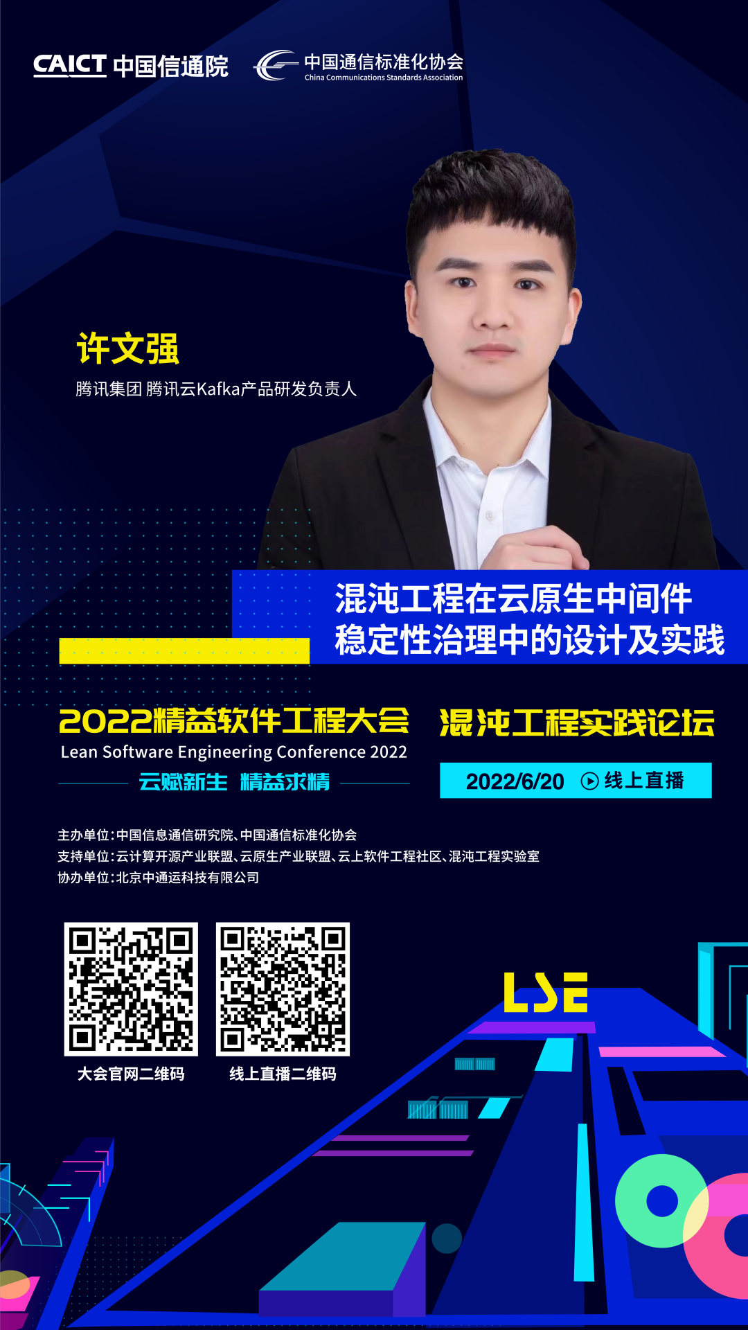 腾讯云Kafka产品研发负责人许文强将在混沌工程实践分论坛为大家带来以《混沌工程在云原生中间件稳定性治理中的设计与实践》为主题的精彩演讲。