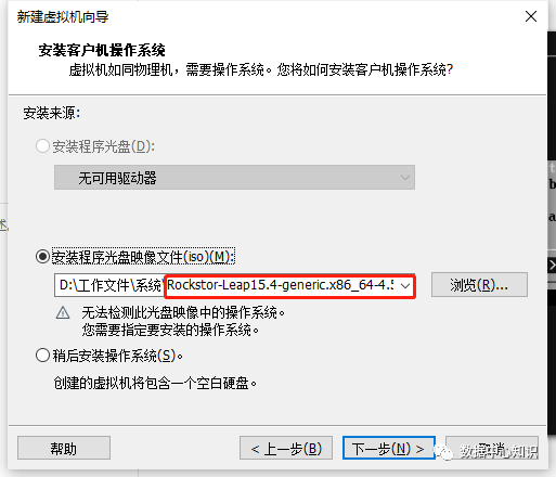 1、打开下载好的 VMware workstation ,选择>文件>新建虚拟机>自定义>下一步>选择好我们需要安装的 Rockstor 的安装包>下一步
