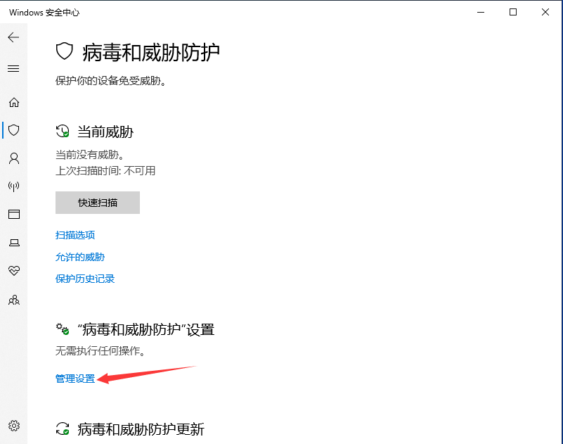 首先,打开Windows安全中心,点击【管理设置】,如下图:
