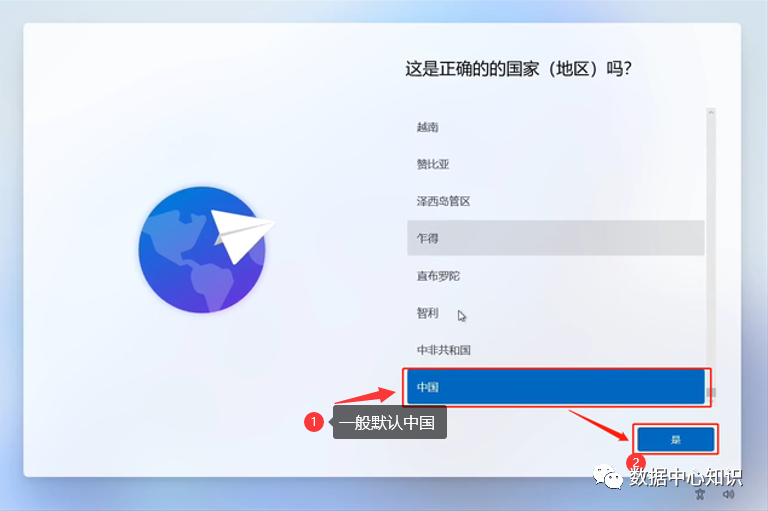 进入此界面后,检查第一项是否为【中国】,一般默认是【中国】,然后选择第二项的【是】。