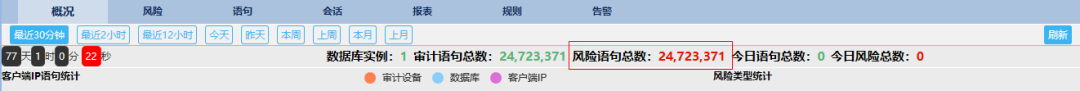数据预警结果输出主要依靠图表统计、信息告警、详情列举等形式进行展现,但信息建立的基础全部来自于抽象独立的SQL语句。例如图三、四,从产品特性和审计对象角度,这种审计结果符合预期。但就预警结果而言,预警结果不显性,阅读门槛高的问题也暴露无遗。尤其当审计人员缺乏相关专业知识,面对大量SQL语句无法快速定位风险,还需投入大量时间进行进一步排查和定位。而被审计数据来源单一是主要原因之一,传统的数据供给方式主要依靠网络镜像或Agent提取,数据库审计系统只能单方面接收和分析。哪些库、表、字段需要重点监控,什么数据,是否敏感、有无外泄可能一概不知。