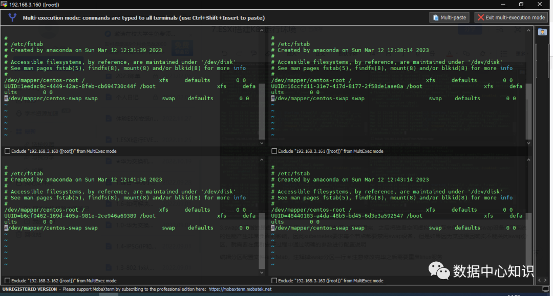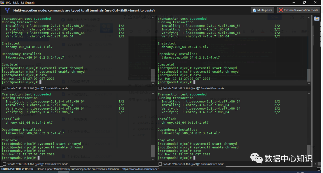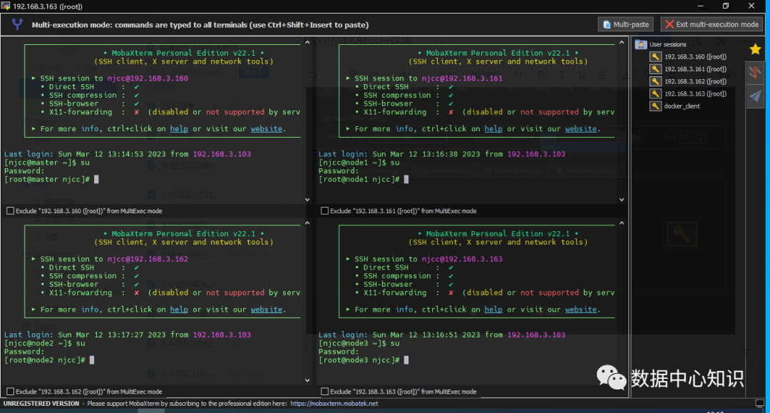 全部登录后,可使用MobaXterm工具带的Muti-execution功能批量命令行操作!