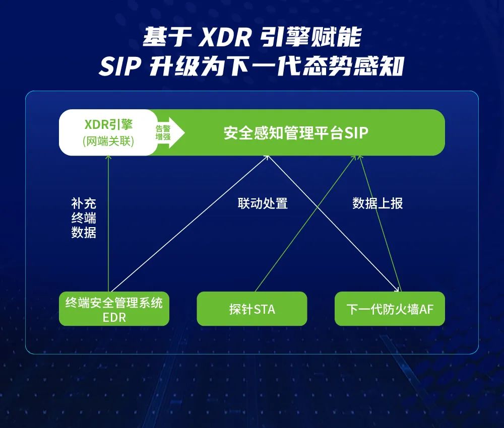 集“高级威胁检测”和“安全运营”能力二合一,通过集成XDR创新检测引擎,大幅提升高级威胁检测精准度,同时广泛联动自有及第三方安全设备自动化处置,可接入云端安全托管服务MSS,安全建设由工具使用转化为体系化运营,帮助用户看懂、看清全网安全态势。