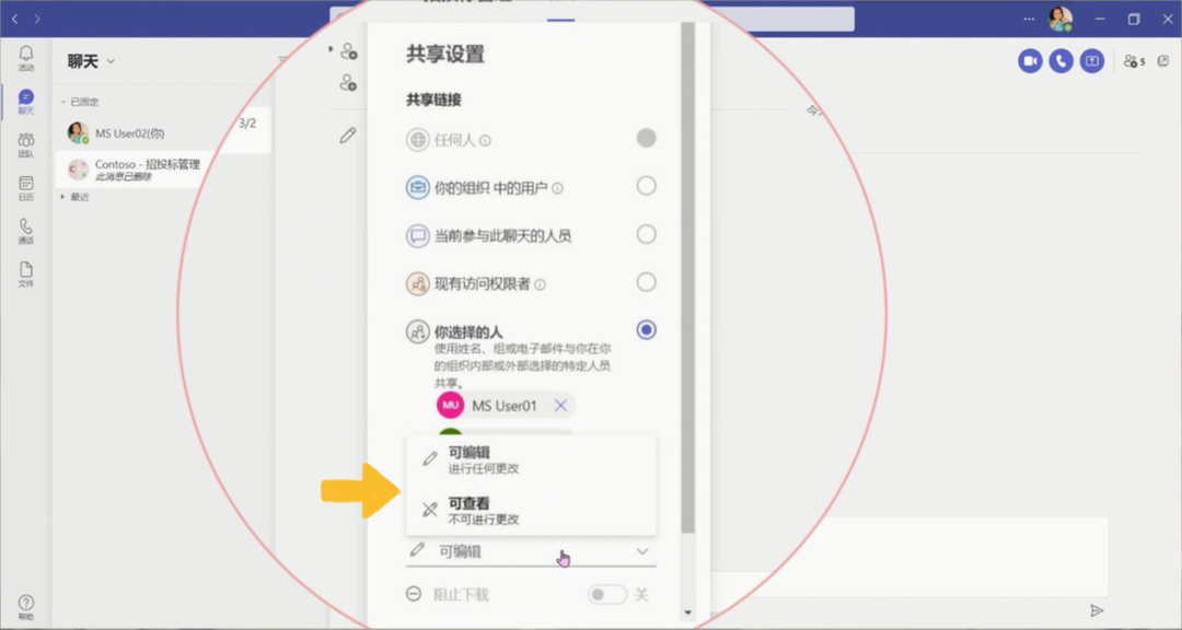 Microsoft Teams 作为企业级一站式协作平台,相当于您组织的数字化中枢,只包含工作相关内容及联系人,不再与个人生活沟通混为一谈,同时支持细粒度文档权限管理,非指定用户无法打开文档,严格管控文件信息安全。