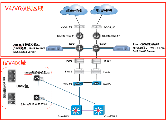 2)要求客户外联区链路即运营商(如电信、联通、移动)链路都支持IPv6/IPv4双栈;