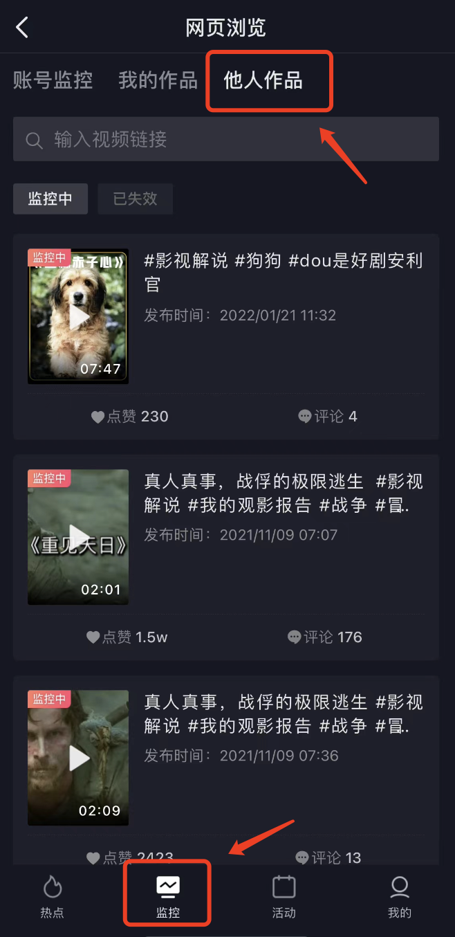 对抖音创作者而言,除去内容功底,善用数据是从竞争中脱颖而出的关键能力。通常,创作者都知道在自己新作品刚发时,通过即时数据反馈,判断本条作品的传播潜力。但只有少数创作者知道,还可以通过数据工具,第一时间监控竞品账号的内容动态,包括它们的即时数据反馈,解读更多有价值的信息。通过数据了解与分析竞品内容、自己内容、某些潜在的值得关注的内容,一旦上述内容有出现爆款的数据趋势,将第一时间获得提醒。上述数据能力被称为“数据监控”。目前有成熟数据分析能力的MCN机构及达人,多数都会付费采用第三方平台提供的此类服务。抖音热点宝在2月的最新一版产品迭代中,新增了数据监控功能,并免费对抖音创作者开放,希望可以帮助创作者提升信息获取效率,产出更多优秀的作品。场景1:我想监控自己新作品发布后的实时数据,便于在它流量表现优异时及时知晓,然后投放Dou+;