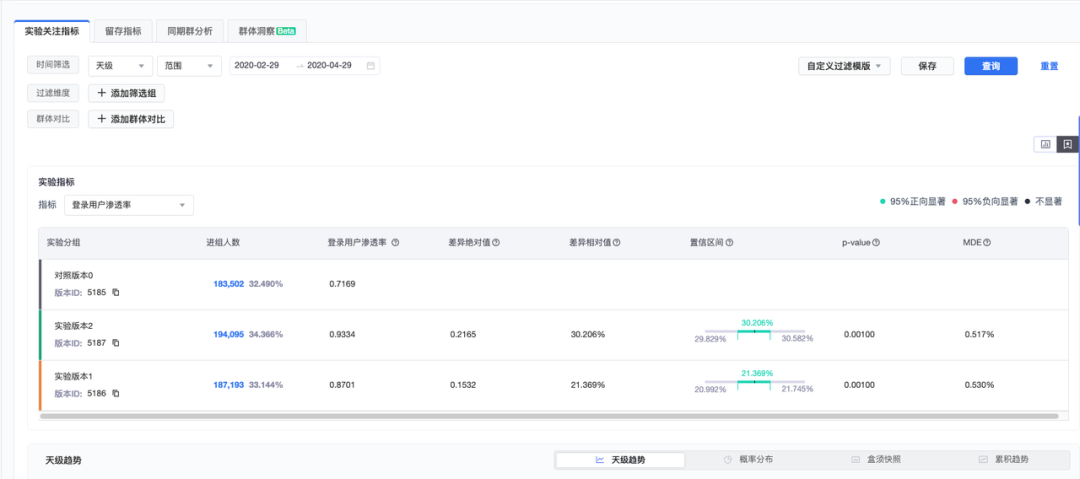 分析的日期区间及过滤条件 选择合适的指标来评估实验带来的收益 实验版本和对照版本 报告类型, 例如:做多天累计分析、单天的趋势分析等