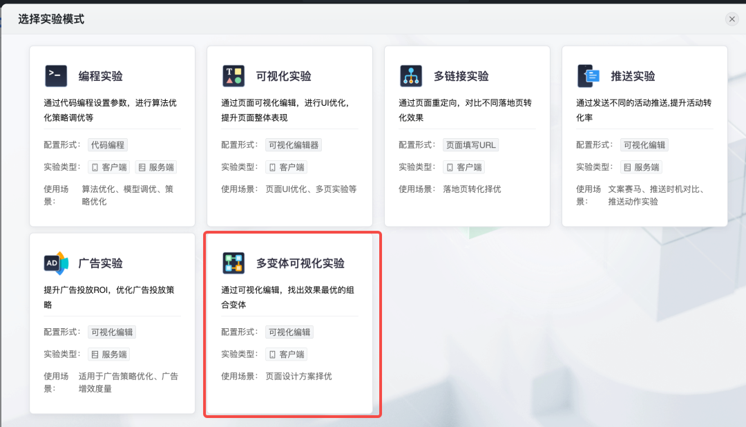 当网站/APP访问量较高时,运行多变体实验才比较有用且有效。 当用户有一个策略假设可以通过多种方式实现变体,但无法决定该测试哪种组合时,建议使用多变体实验验证。
