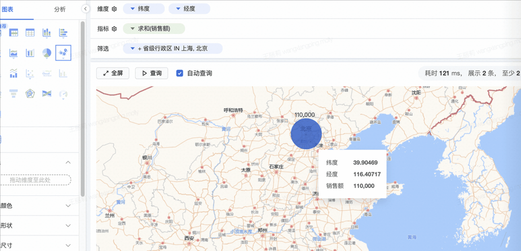 表格的单元格内可插入时间趋势图,放在指标旁以体现指标的时间趋势。 地理位置分析能力增强,可视化图表增加GIS标记地图、热力地图和飞线地图。