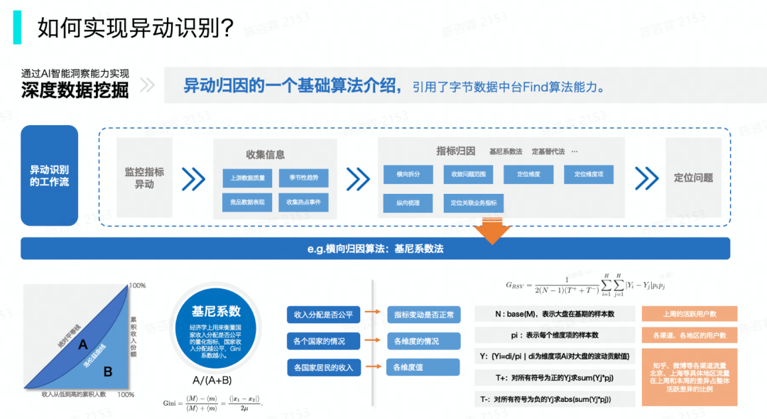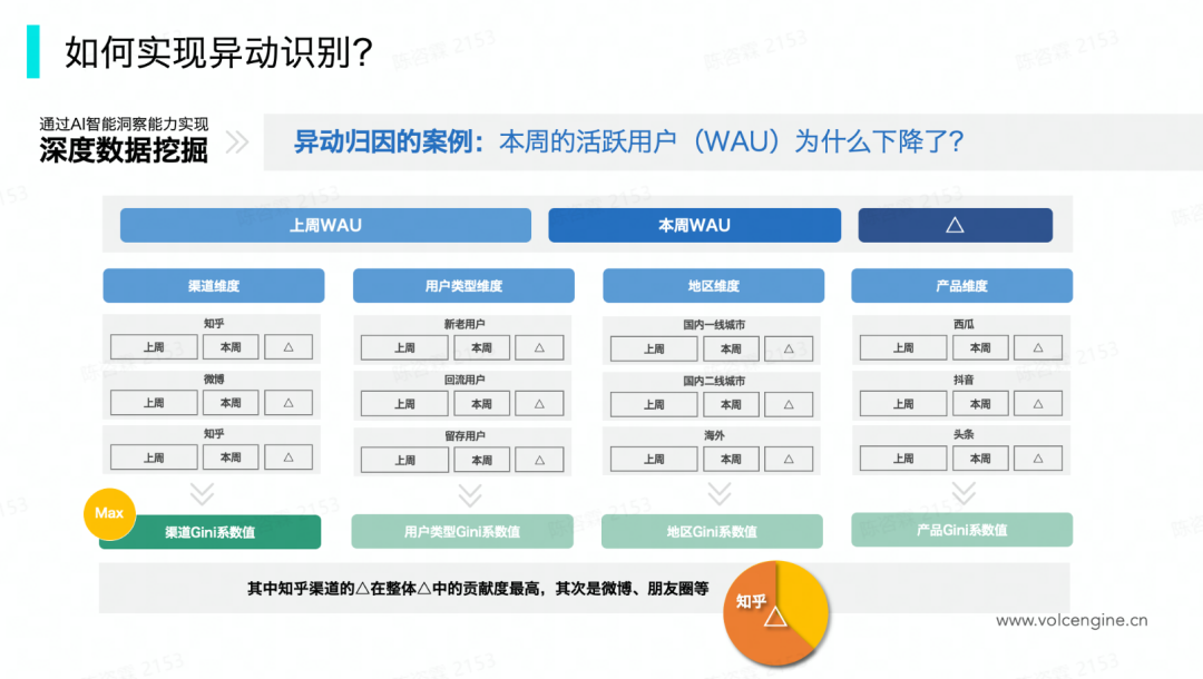 智能数据洞察的智能归因能力,通过内部沉淀算法智能识别异动,以可视化拖拽方式快速配置,发现问题根因,可以帮助业务快速发现指标波动的关键因素。