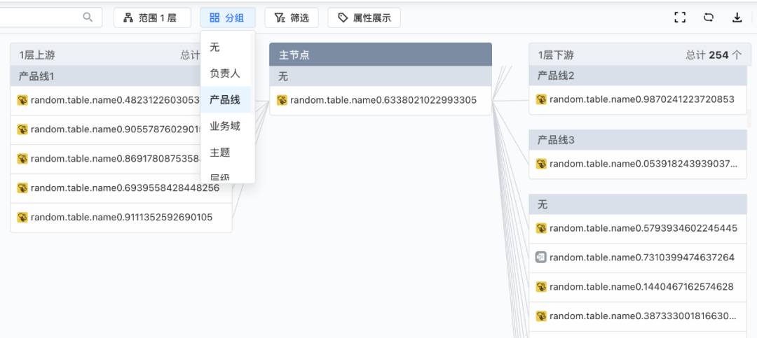 按关键指标分组查看:例如当表数据发生变更时,分组查看所有下游表的负责人以便通知变更。 筛选关键信息查看:例如用户找数据指标的时候,仅看相关的报表更高效。