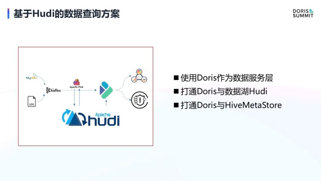 因此我们把 Doris 作为一个数据服务层,和下层的 Hudi 做数据打通,实现数据的直接查询,避免数据反复导入导出。