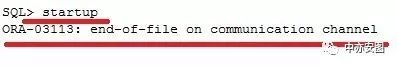 最终,startup命令在敲入后长时间依然无响应,大概10分钟后后报ORA-03113错误后退出。