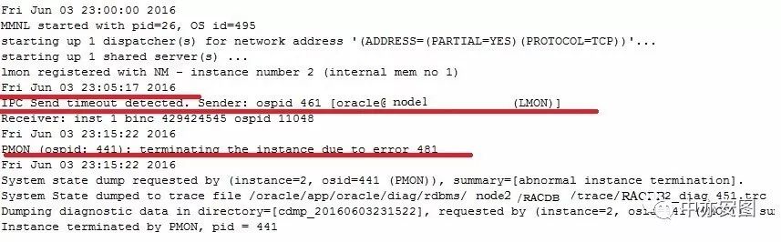 最终,节点2数据库数据库实例由于私网不通,IPC通讯超时,被驱逐出集群,日志如下